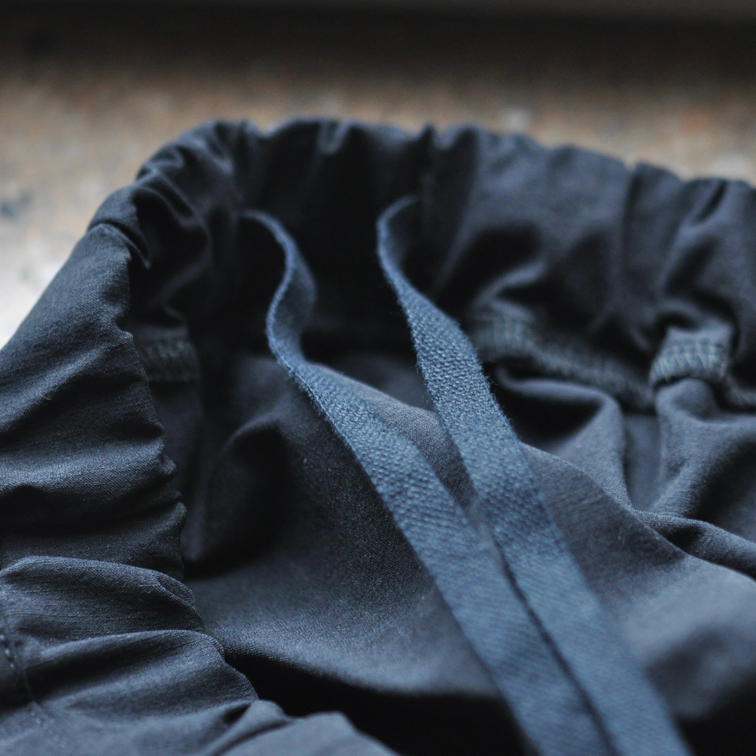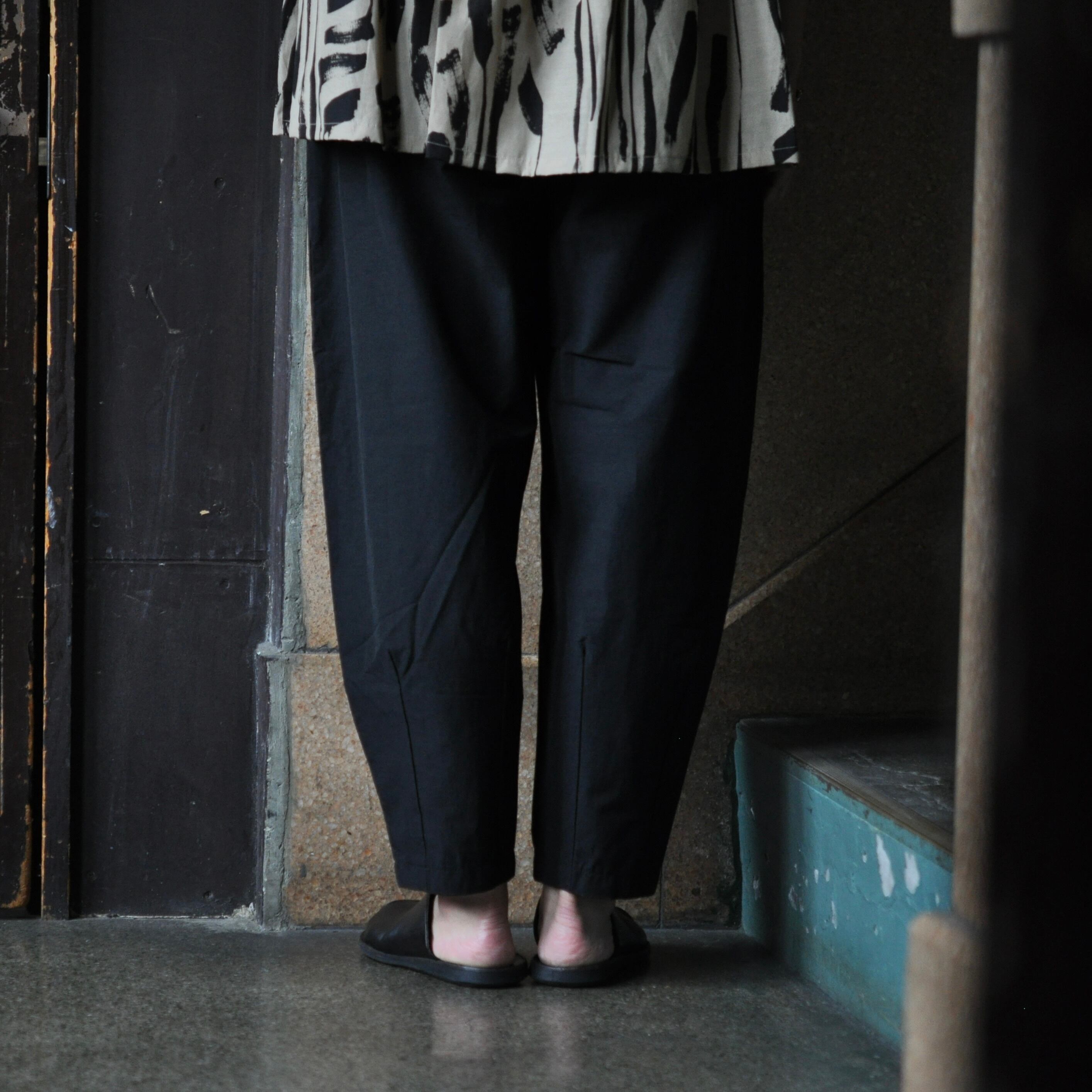軽くストレッチの効いた生地を使った短め丈のパンツ。