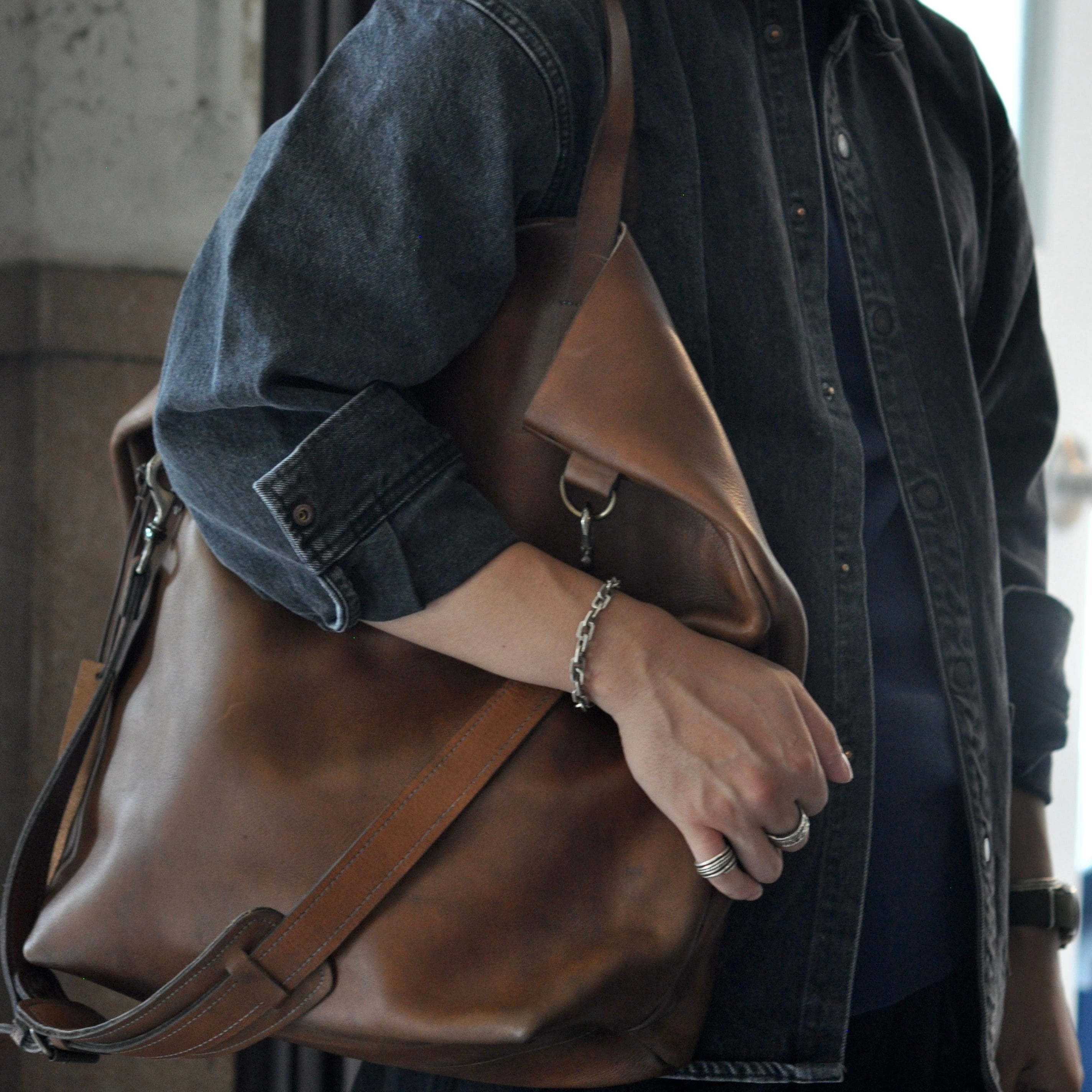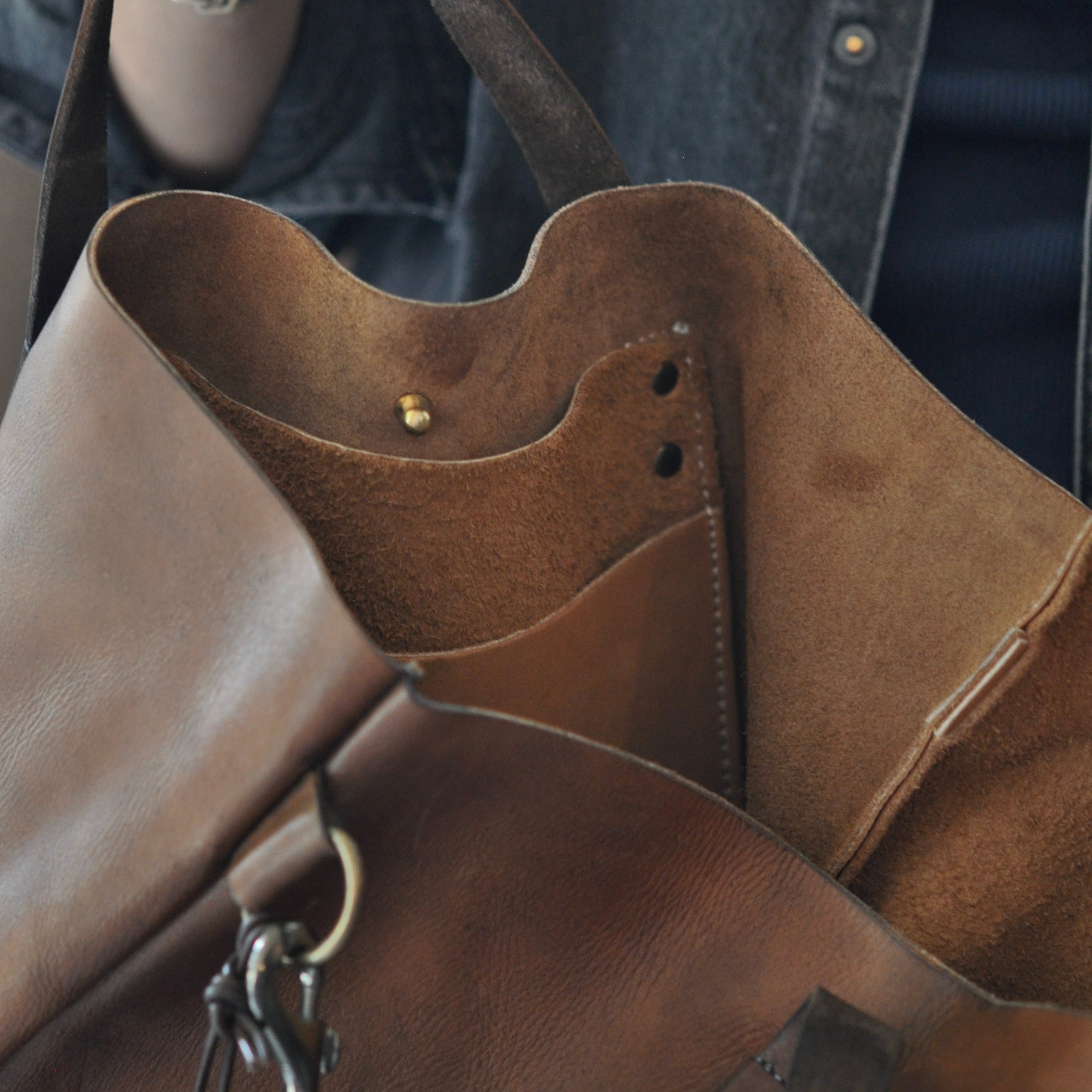 職人によりハンドメイドされたレザートート。