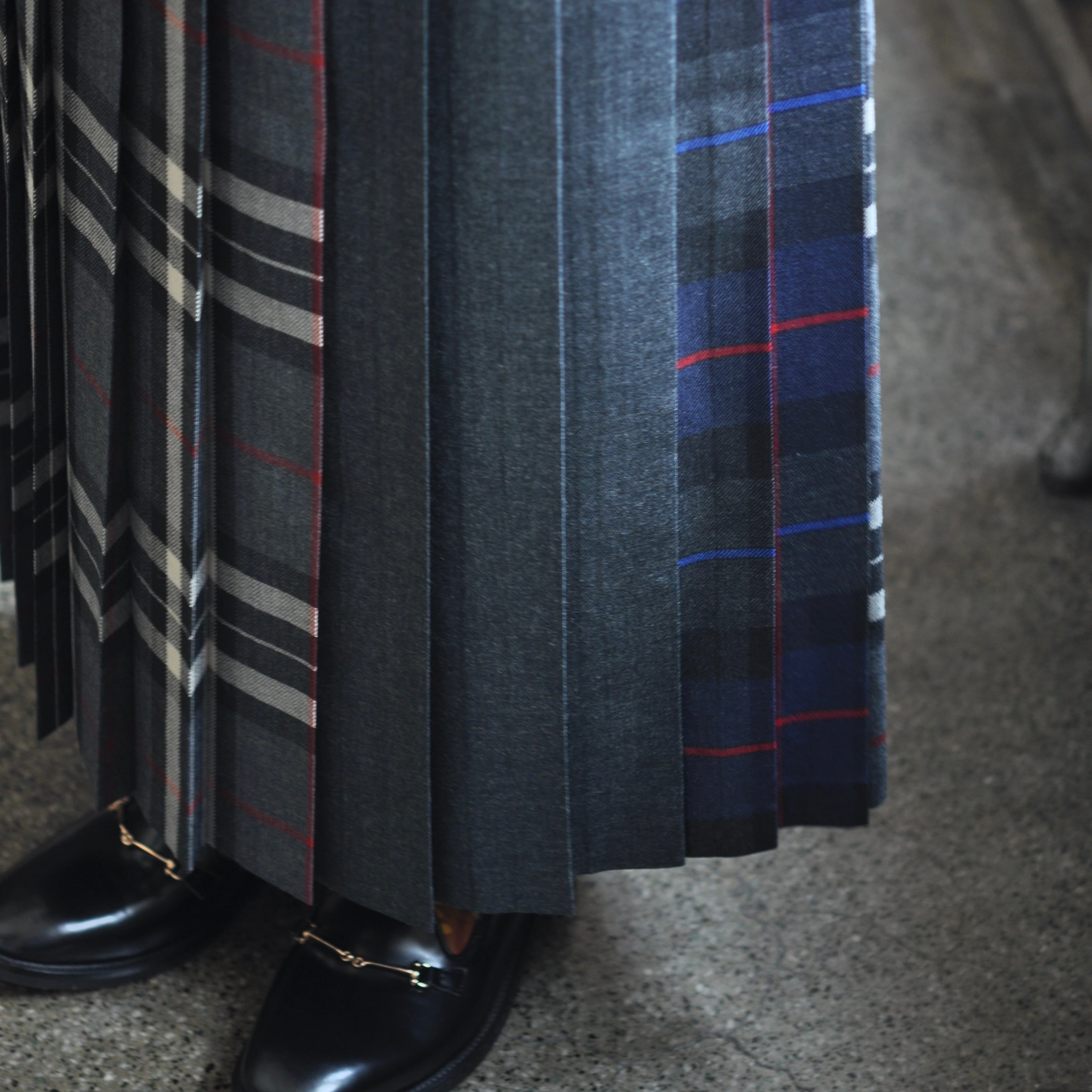今回は別注品として、贅沢に3種類の生地を使い1着のスカートを仕立てました。