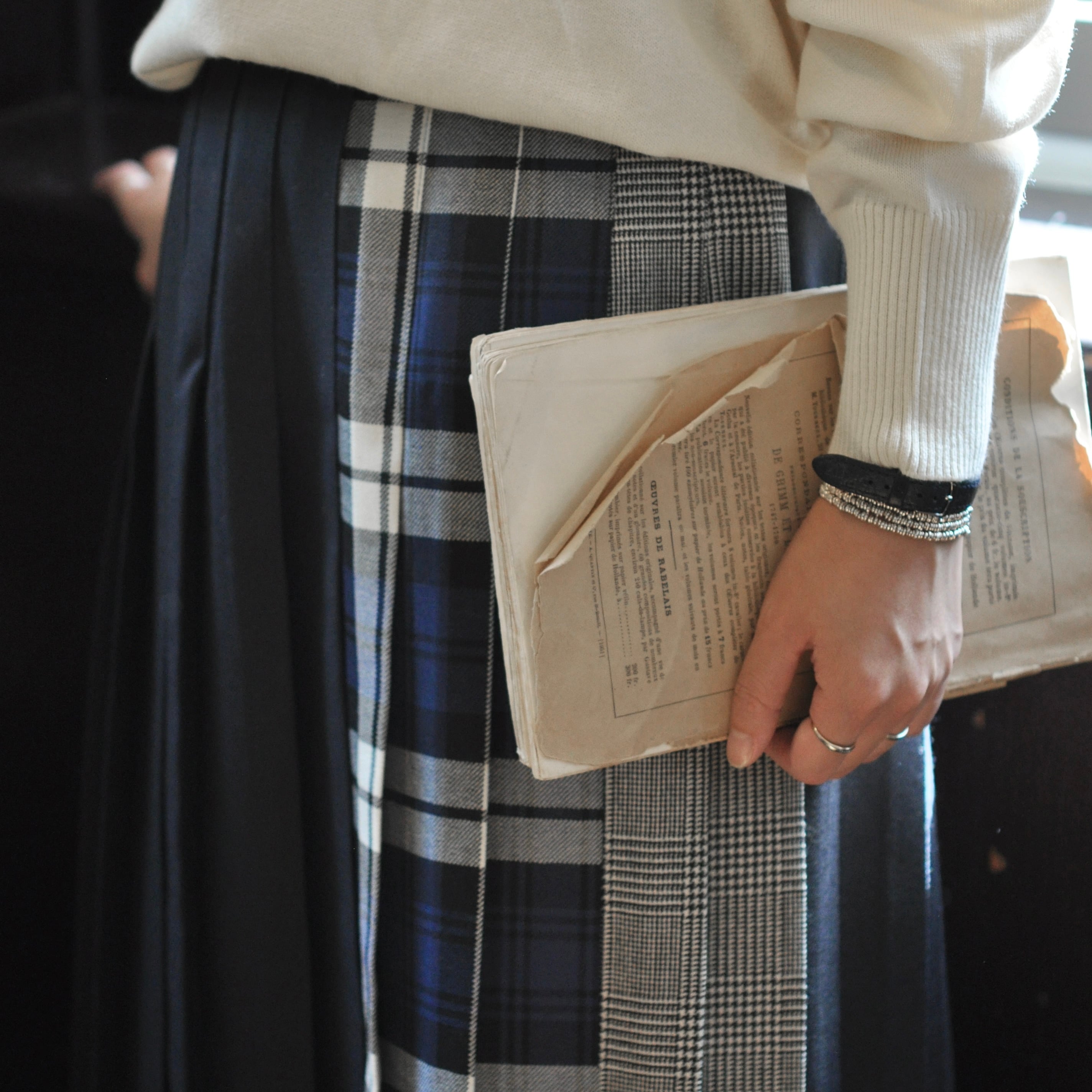 今回も別注品として、贅沢に3種類の生地を使い1着のスカートを仕立てました。