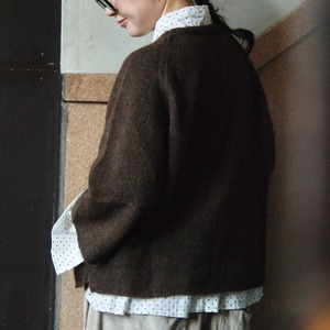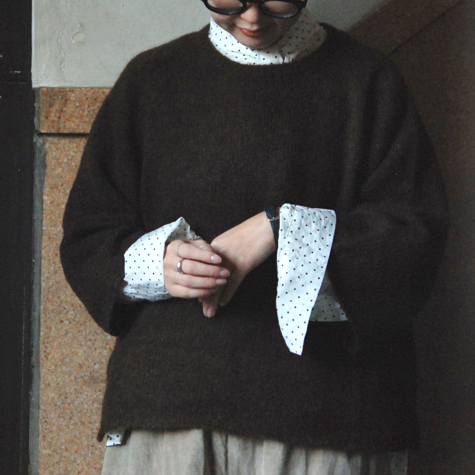 お袖は7分丈なので少し早めの秋口から、インナーと重ねて冬は暖かく長く楽しめます。