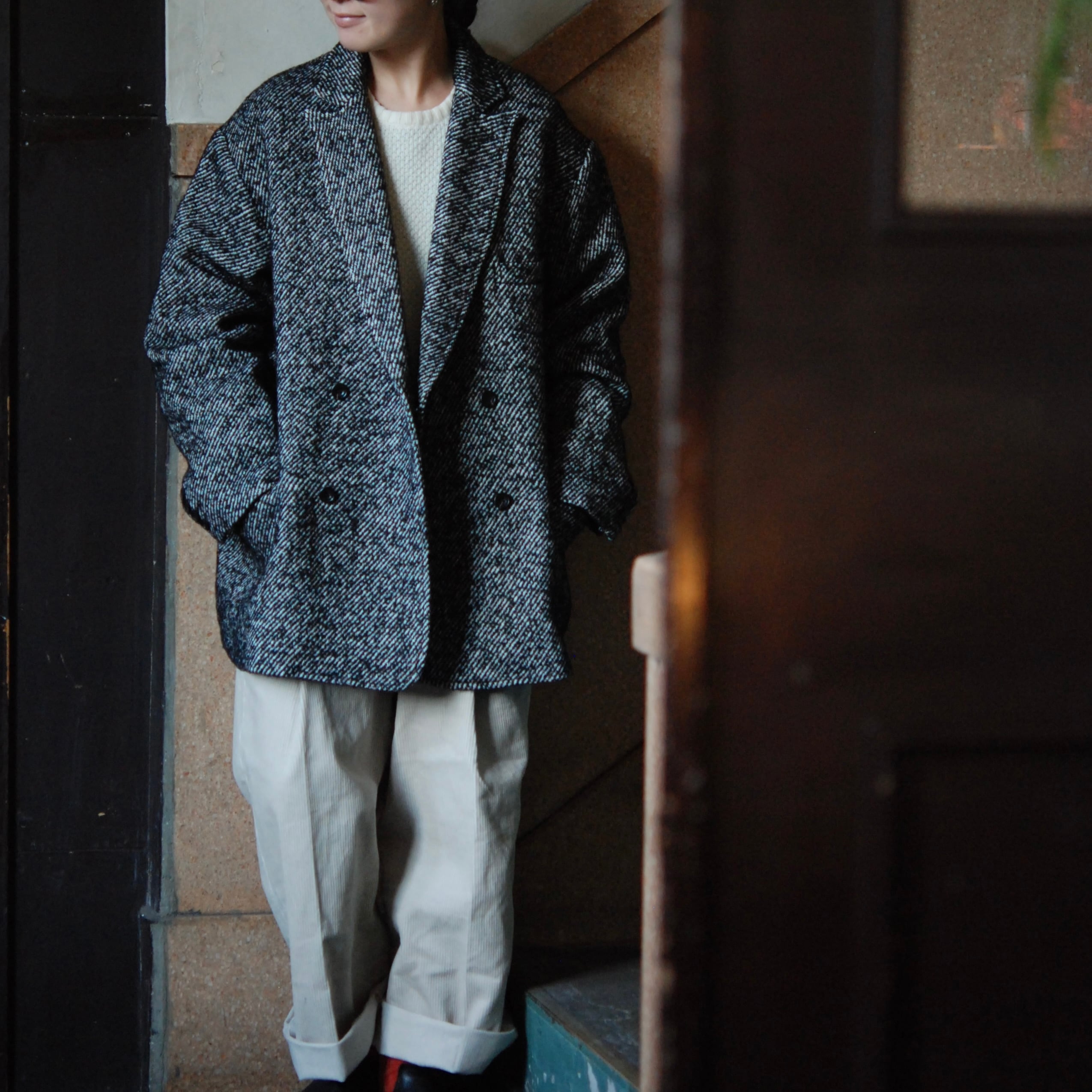 オーバーサイズでクラシックなスタイルが魅力のダブルブレストジャケット。