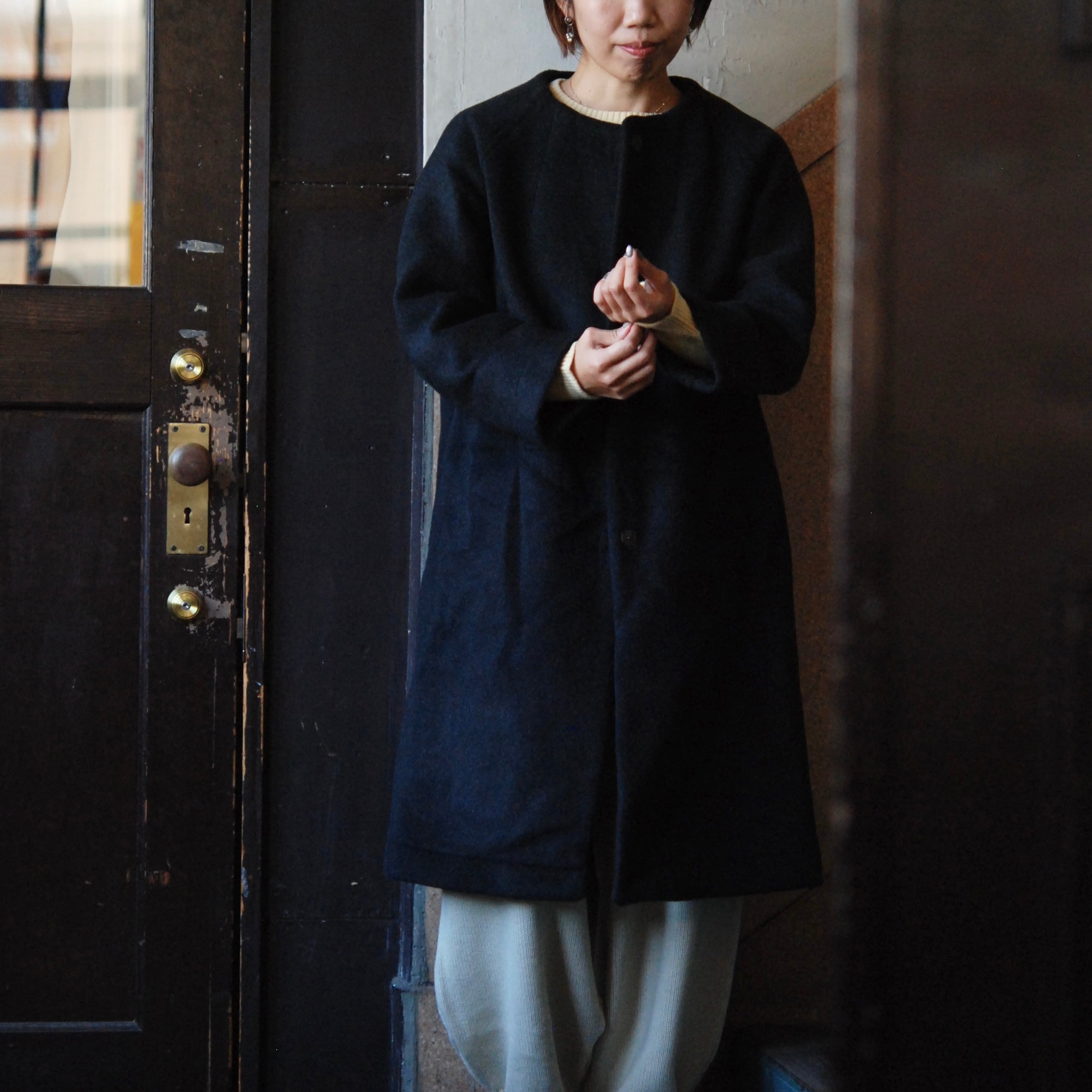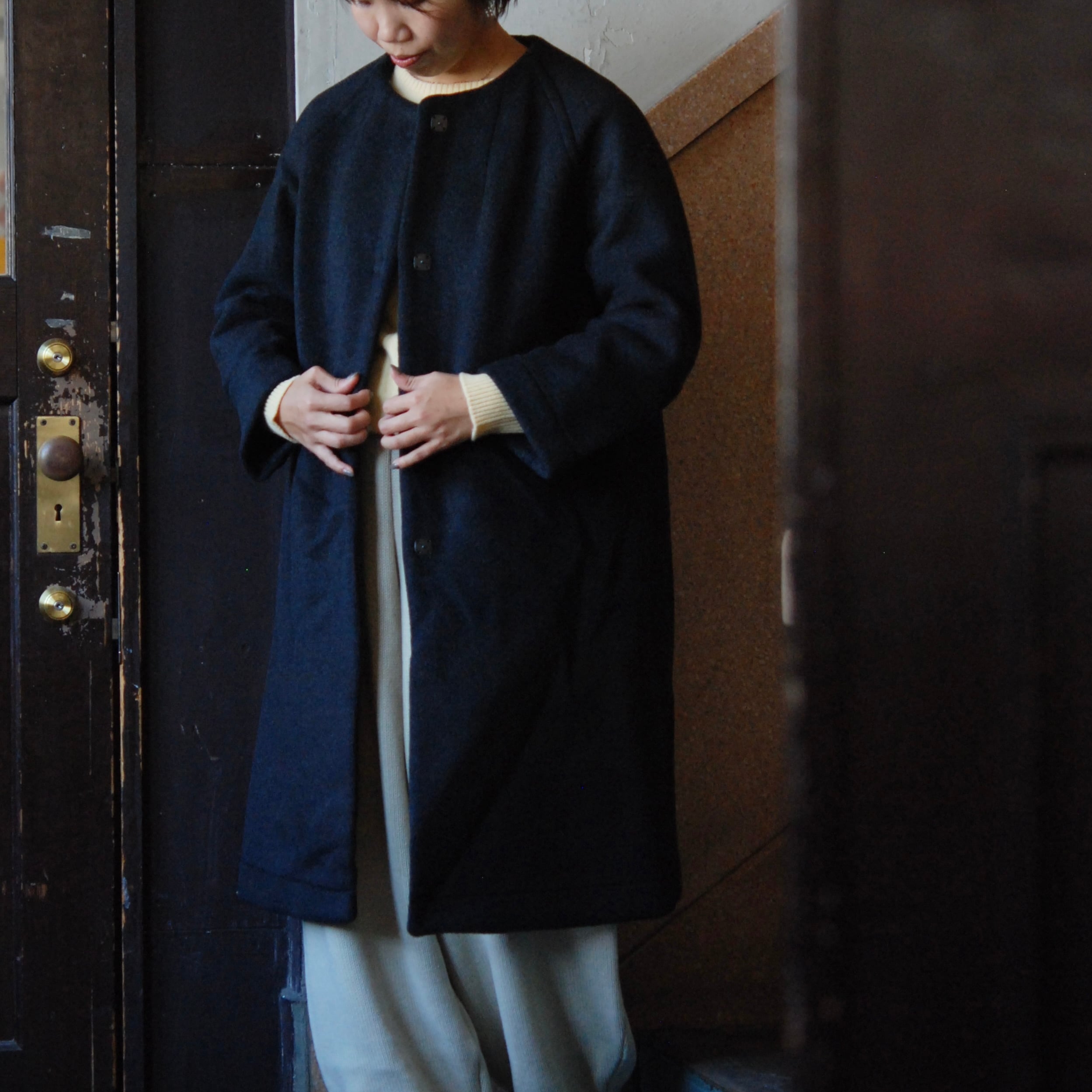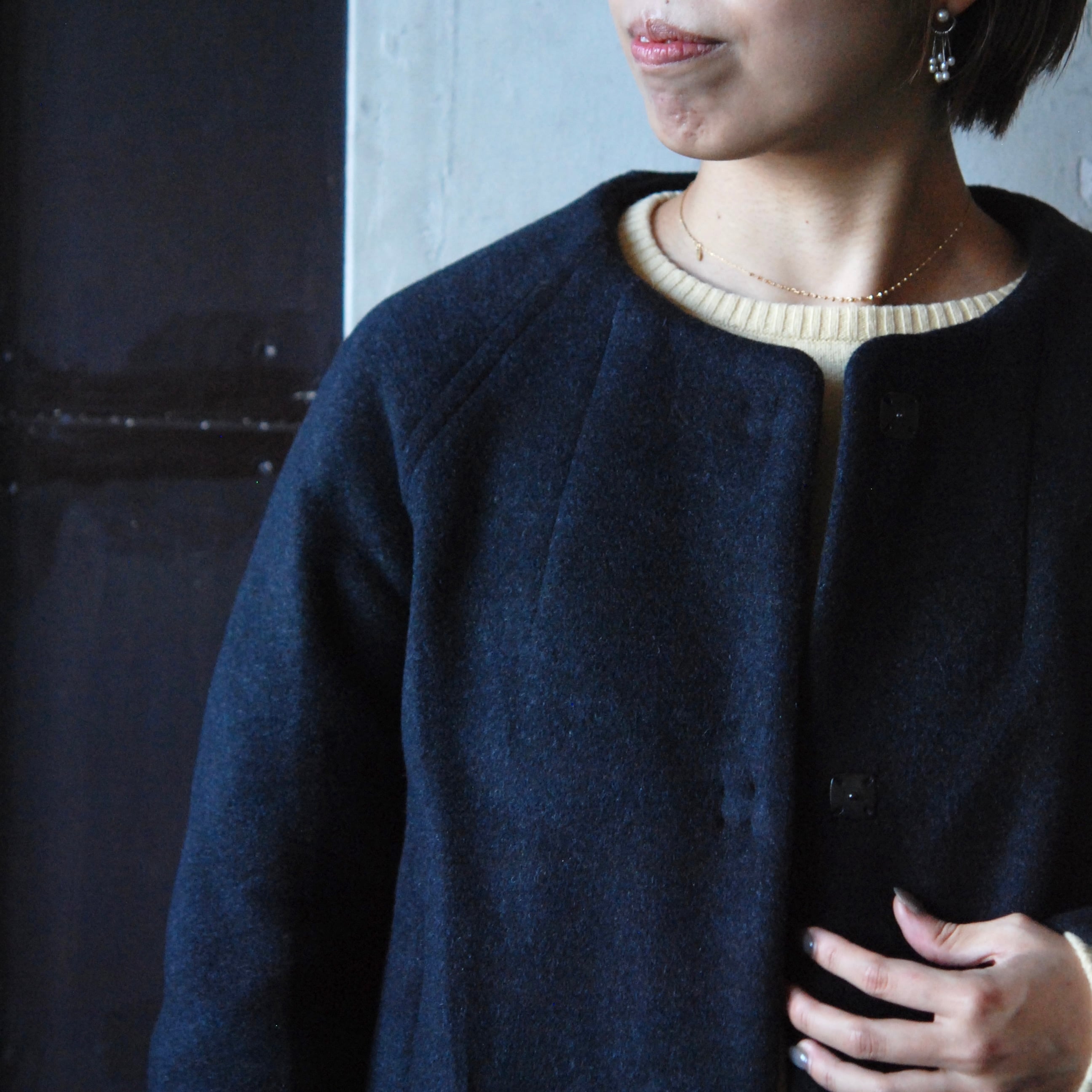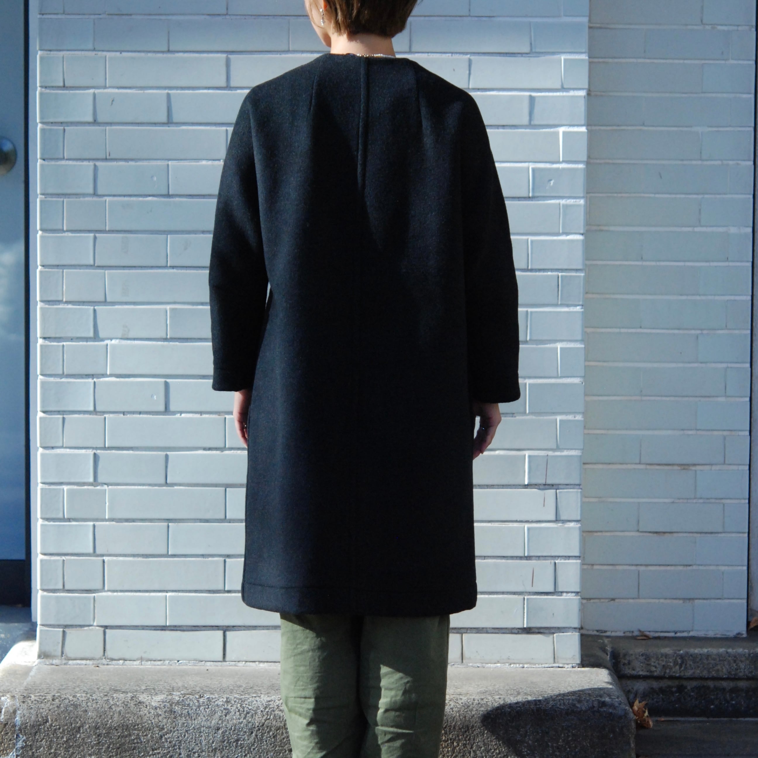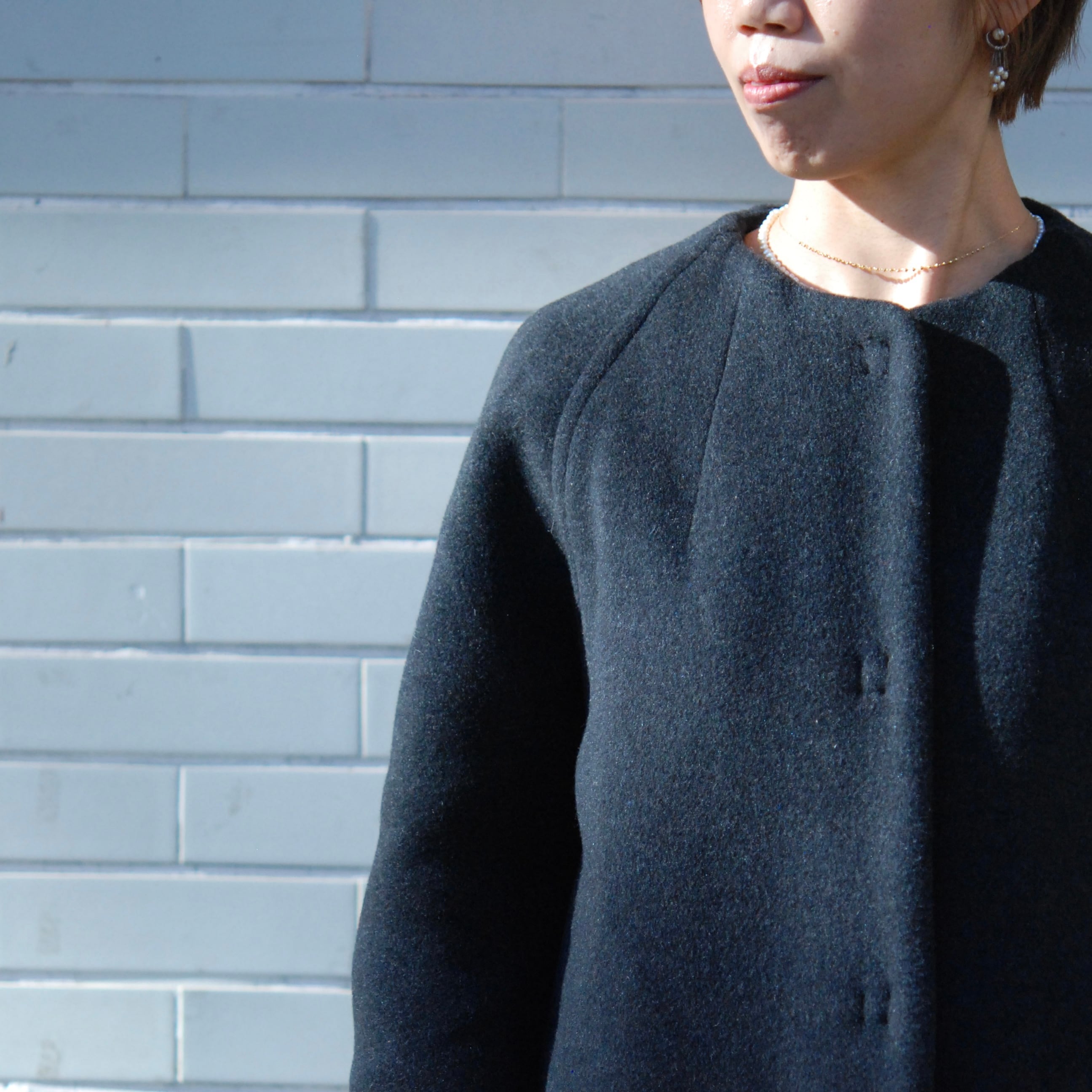 ノーカラーなのでマフラーを巻いた時などもすっきりと、